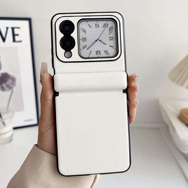 Funda de Cuero con Textura y Eje Magnético para Huawei Nova Flip (Blanco)