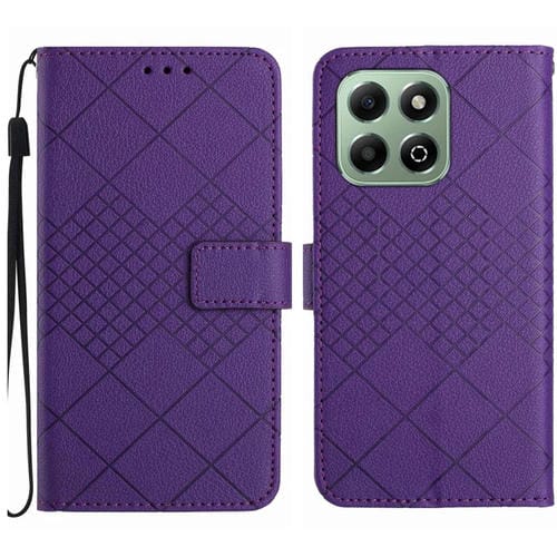Funda de Cuero Textura Cuadrícula Rómbica para Honor 200 (Morado)