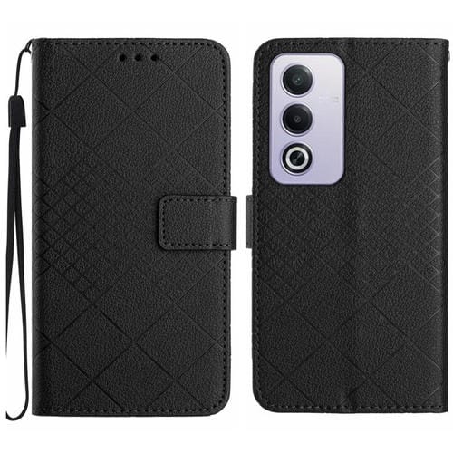 Funda de Cuero con Textura de Cuadrícula Rómbica Global para Oppo A80 Eu / A3 Pro (Negra)
