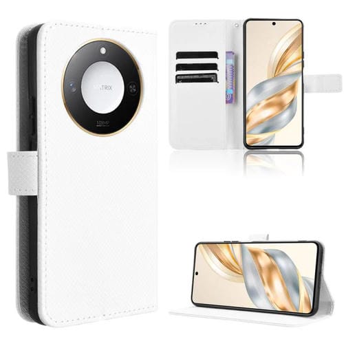 Funda de Cuero con Textura de Diamante Inteligente para Honor X60 5G/X9C (Blanca)