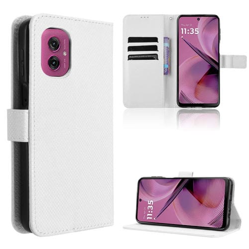 Funda de Cuero para Motorola Moto G55 5G con Textura de Diamante (Blanca)