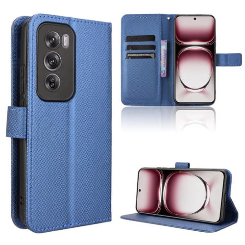 Funda de Cuero con Textura de Diamante para Oppo Reno12 Pro 5G (Azul)