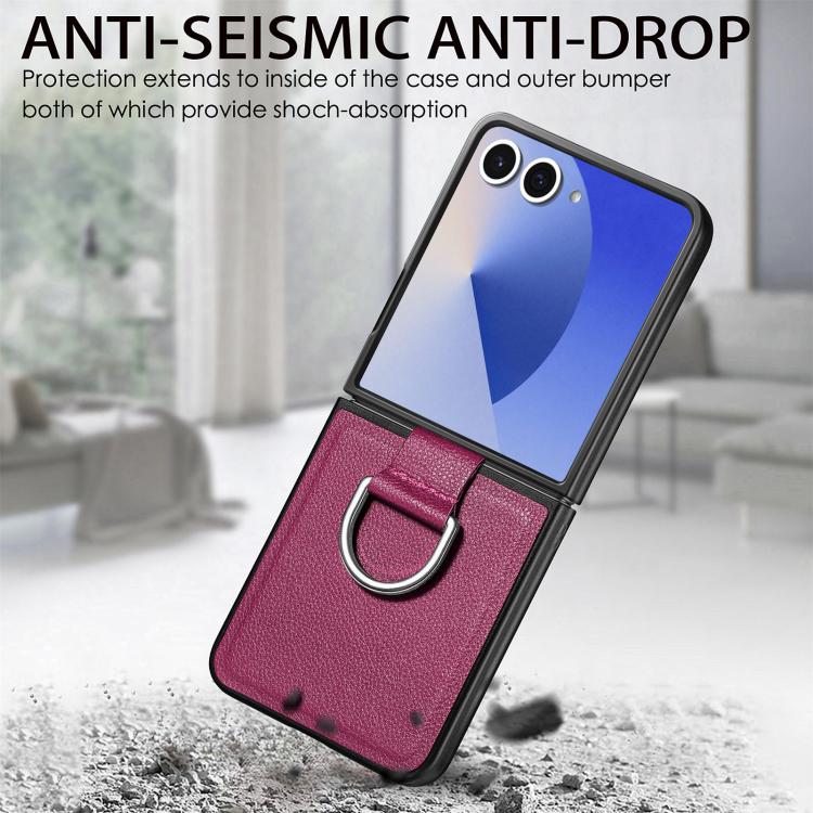 Funda de cuero con textura de lichi para Samsung Galaxy Z Flip7 5G (morado)