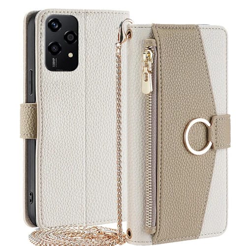 Funda de Cuero Textura de Lichi para Honor 200 Lite 5G con Diseño Cruzado (Blanco)