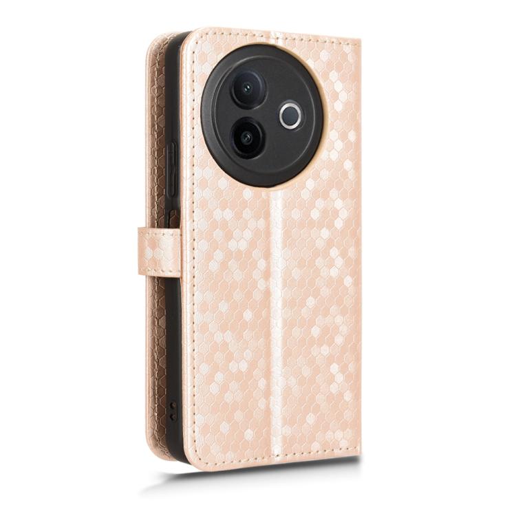 Funda de Cuero con Textura de Panal y Puntos para Vivo Y39 5G / Y300I (Dorada)