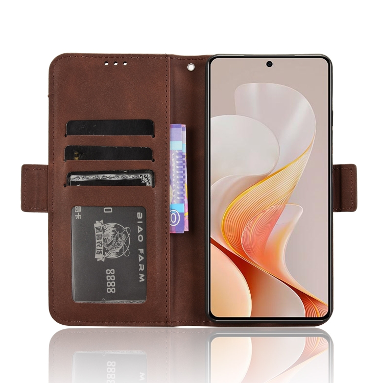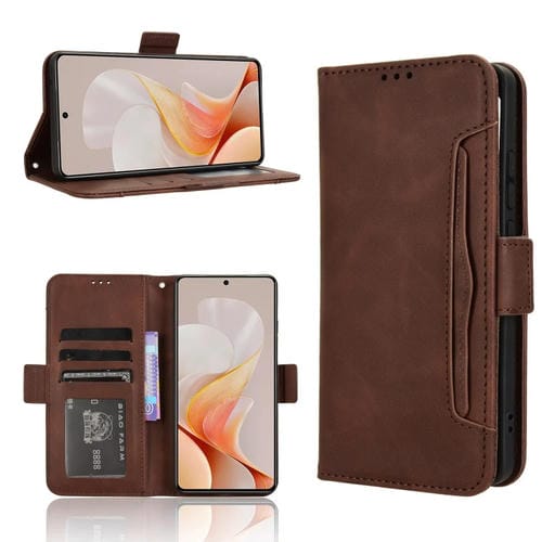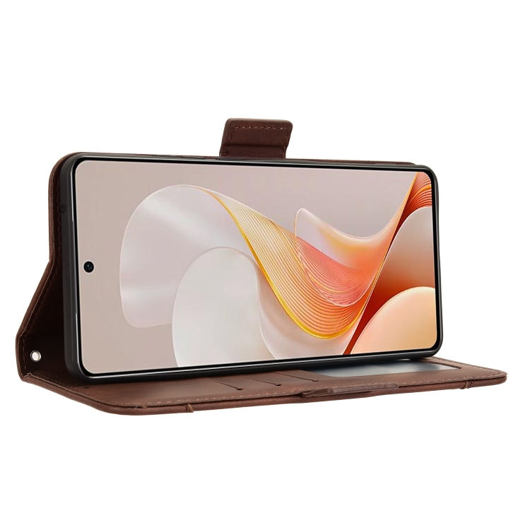 Funda de Cuero con Textura de Piel de Becerro y Ranuras para Tarjetas para Vivo S19 5G (Marrón)