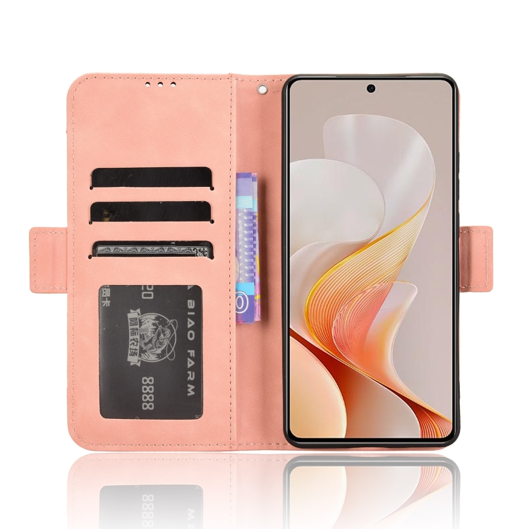 Funda de Piel con Textura de Becerro y Ranuras para Tarjetas para Vivo S19 5G (Rosa)