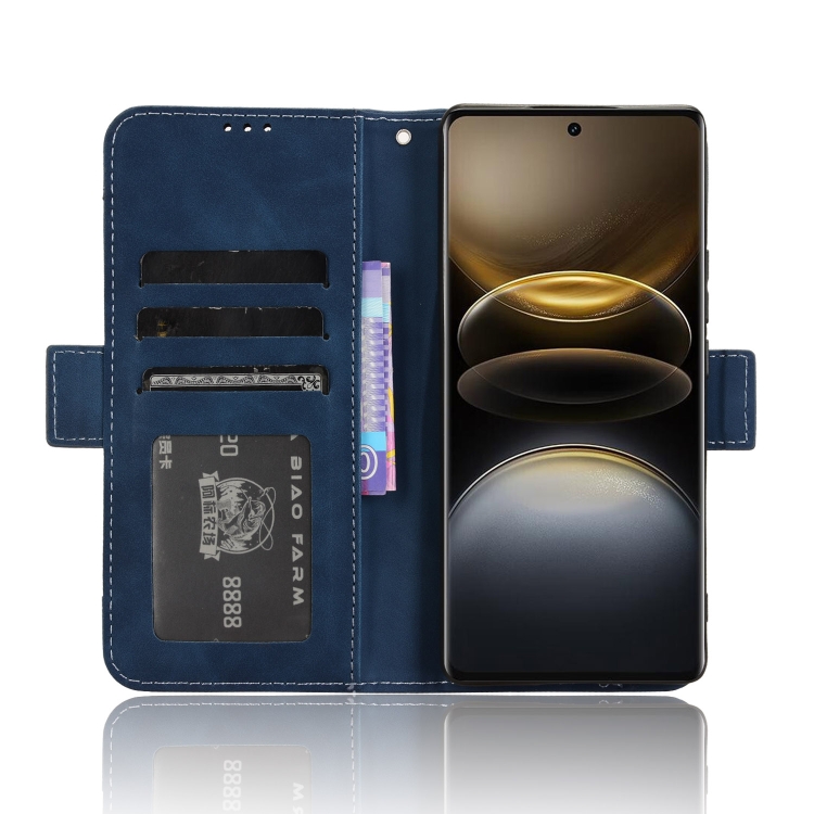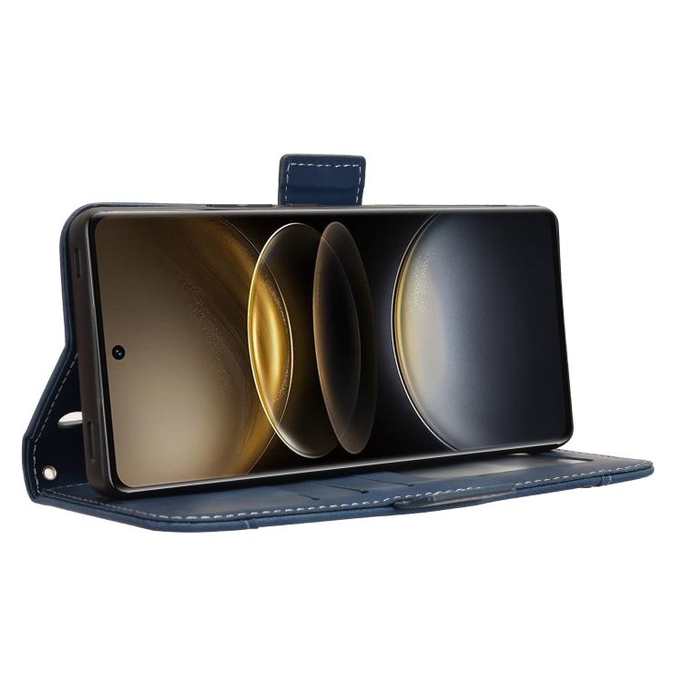 Funda de Piel con Textura de Becerro y Ranuras para Tarjetas para Vivo X100 Ultra 5G (Azul)