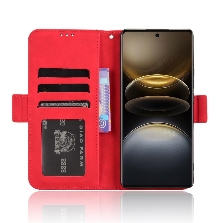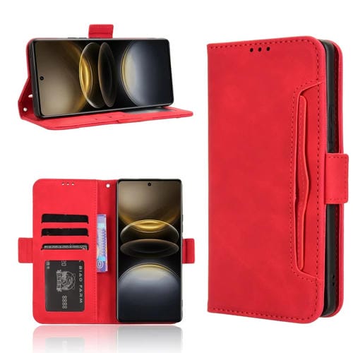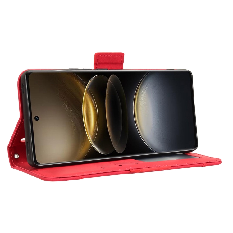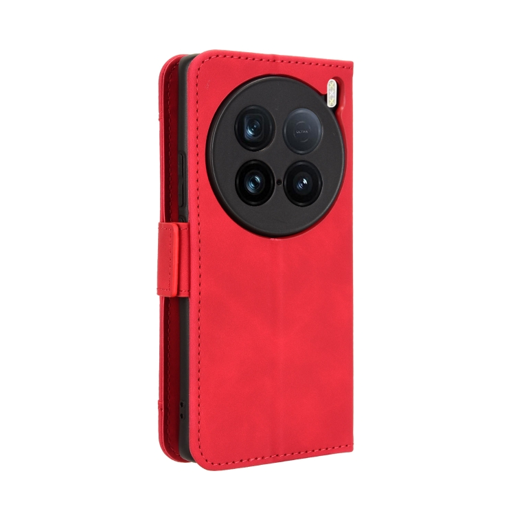 Funda de Piel con Textura de Becerro y Ranuras para Tarjetas para Vivo X100 Ultra 5G (Roja)