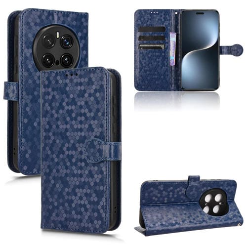 Funda de Cuero con Textura de Puntos Panal para Honor Magic7 Pro 5G (Azul)