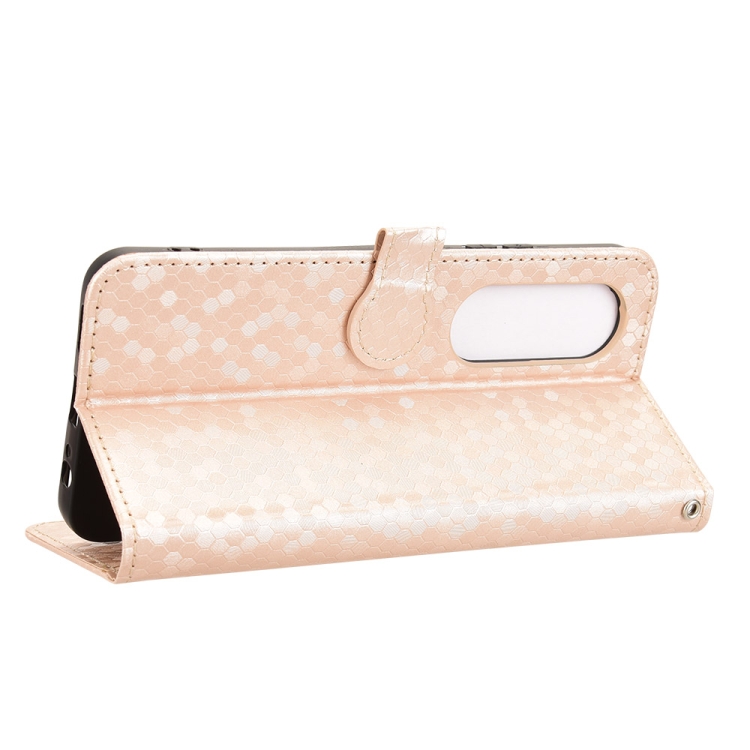 Funda de Cuero Itel S25 Textura de Puntos Panal (Dorada)