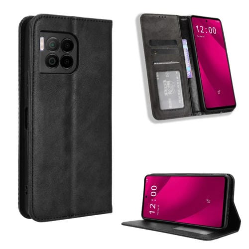 Funda de Cuero T-Mobile Revvl 7 Pro 5G con Textura Retro y Hebilla Magnética (Negro)