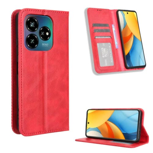 Funda de Cuero ZTE Blade V60 Textura Retro Hebilla Magnética (Roja)