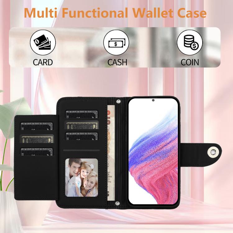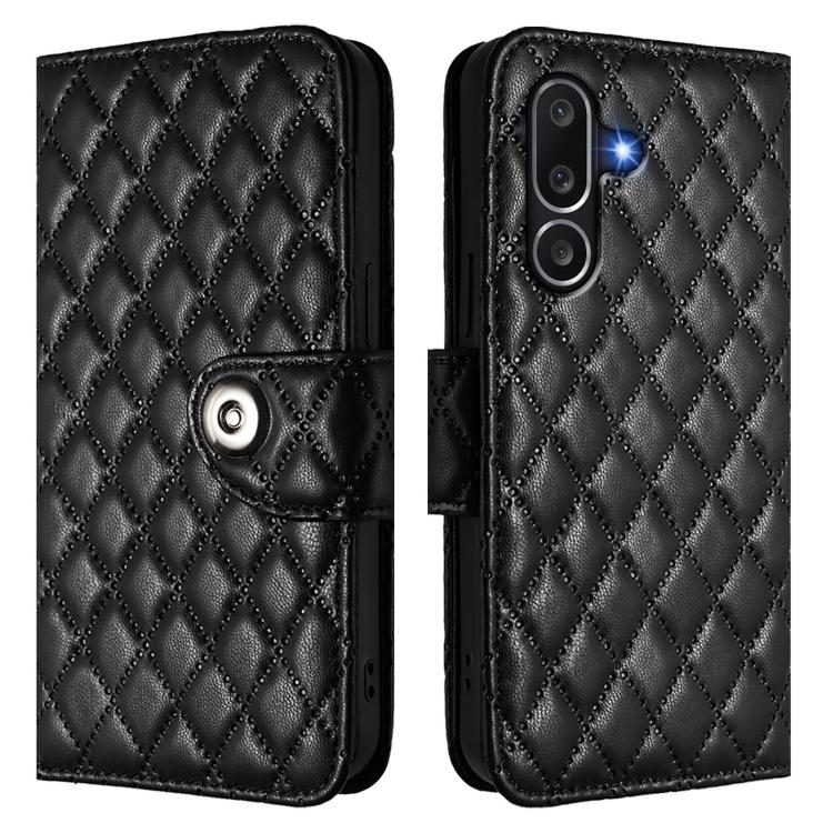 Funda de cuero con textura rómbica y cordón para Samsung Galaxy M56 5G (negra)