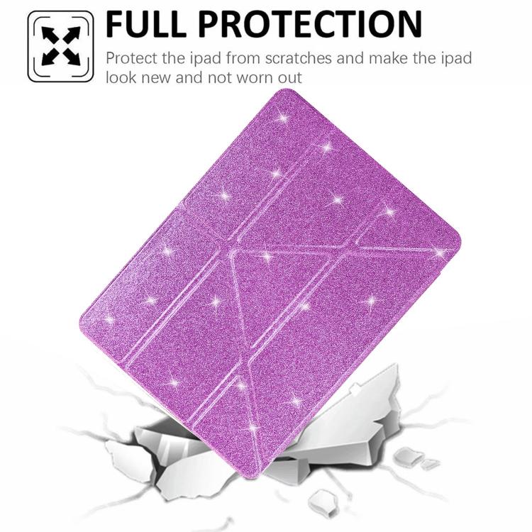 Funda de cuero inteligente con purpurina acrílica transparente plegable en Y para iPad Air 11 (2024/2025) (morado)