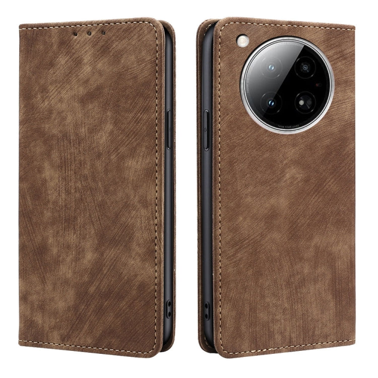 Funda de Cuero Magnética con Cepillo Antirrobo RFID para Infinix Zero 40 4G (Marrón)