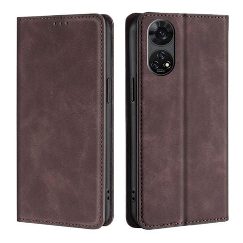 Funda de Cuero Magnética para Teléfono ZTE Anshin (Marrón Oscuro)