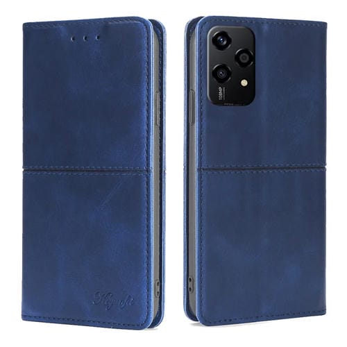 Funda de Cuero Magnética Textura de Vaca para Honor 200 Lite 5G (Azul)