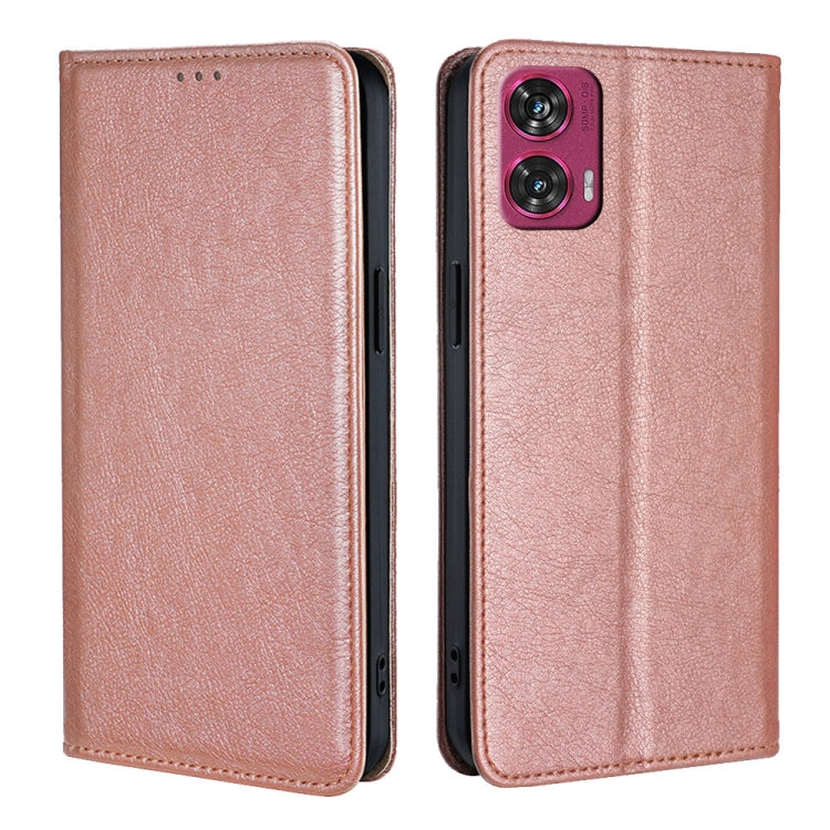 Funda de Cuero Magnética Motorola Edge 50 Fusion 5G (Oro Rosa) Color Sólido con Aceite Brillante
