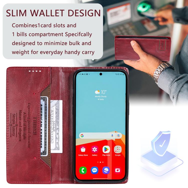 Funda de cuero magnético con textura retro RFID TTUDRCH para Samsung Galaxy A17 5G (roja)