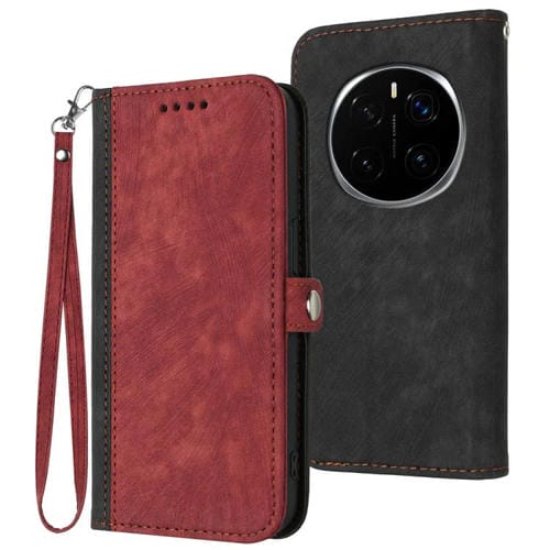 Funda de Cuero para Honor Magic7 Pro con Correa y Hebilla Lateral Doble Plegable (Rojo)