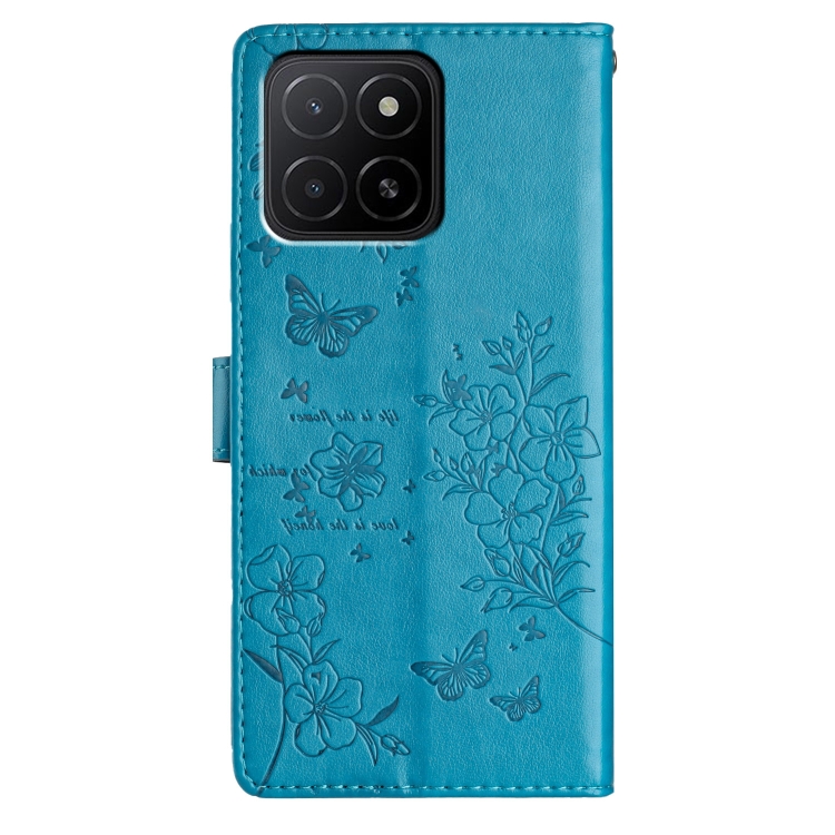 Funda de Cuero para Honor X5B con Mariposas y Flores (Azul)