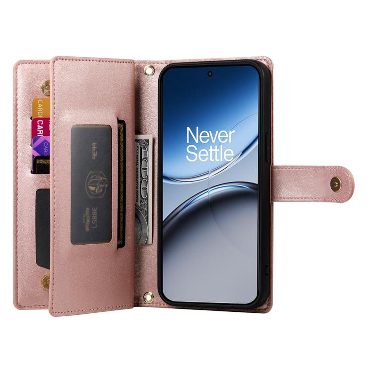 Funda de Cuero para OnePlus 13R Ace 5 Ace 5 Pro con 9 Ranuras y Cremallera (Rosa)