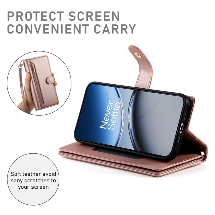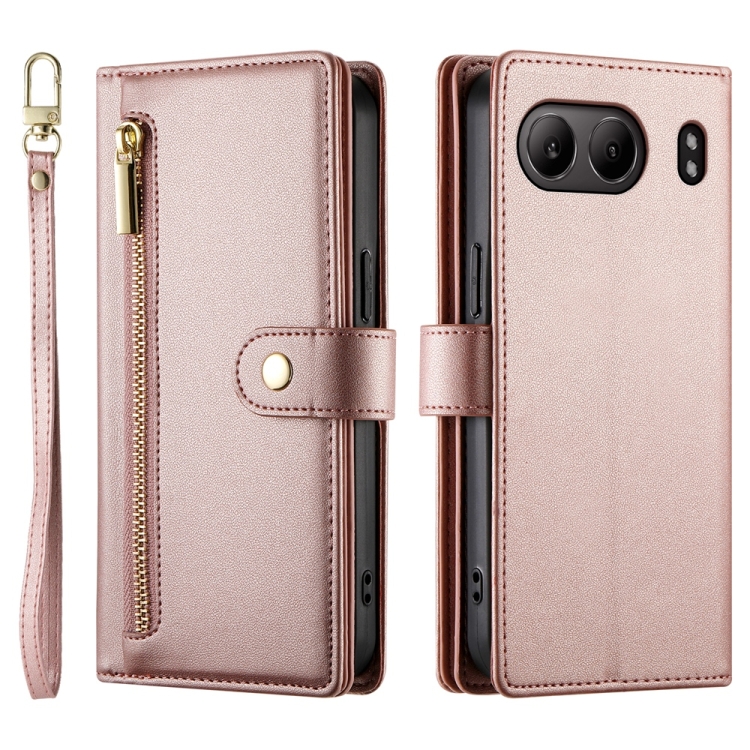 Funda de Cuero para OnePlus Nord 4 5G con 9 Ranuras para Tarjetas y Cremallera (Rosa)