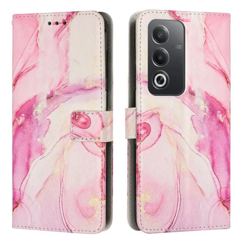 Funda de Cuero para Teléfono con Patrón de Mármol Pintado de la India para Oppo A3 Pro 5G (Oro Rosa)