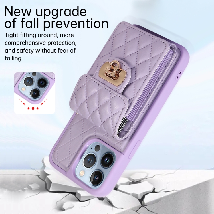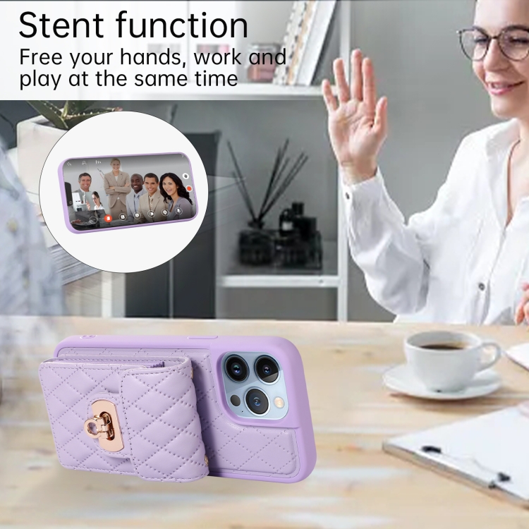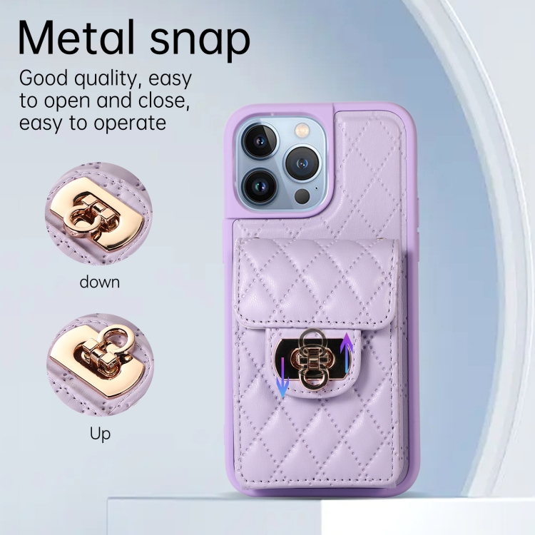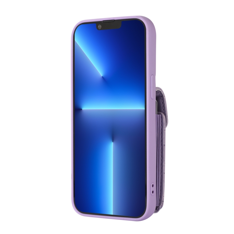 Funda de Cuero para Teléfono iPhone 13 Pro con Ranura para Tarjeta (Púrpura)