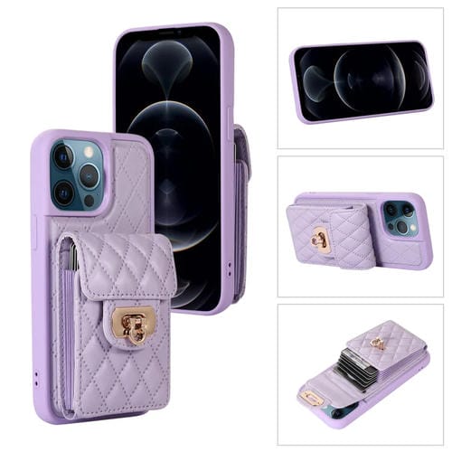 Funda para Teléfono Cuero iPhone 12 Pro Max Ranura para Tarjeta (Púrpura)