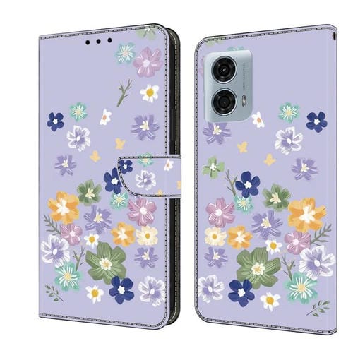Funda de Cuero Pintada a Mano para Motorola Moto G24 Power (Floral Morado)
