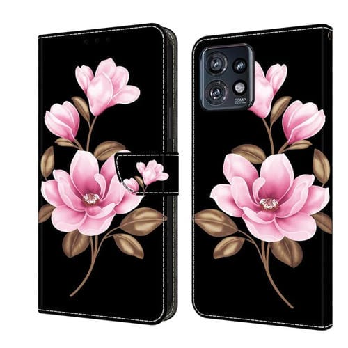Funda de Cuero Pintada a Mano para Motorola Edge+ (2023) (Flores Negras)