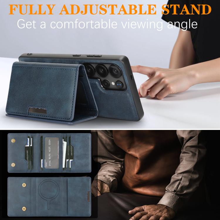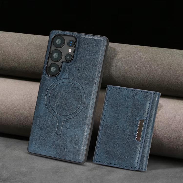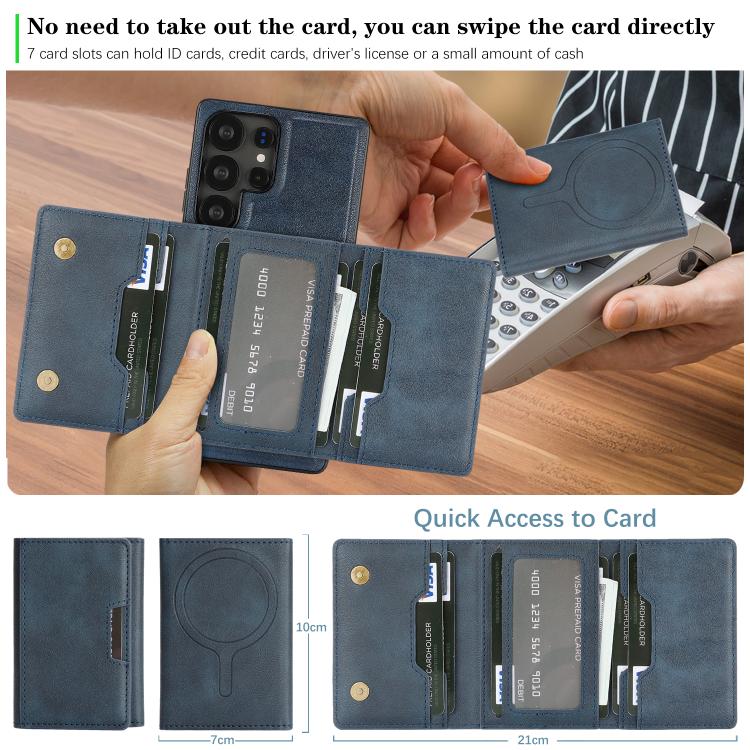 Funda de cuero plegable triple con imán fuerte MagSafe para Samsung Galaxy S25 Ultra 5G (azul)