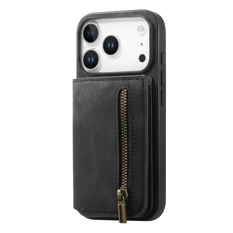 Funda de cuero retro con cremallera para iPhone 17 Pro (negra)
