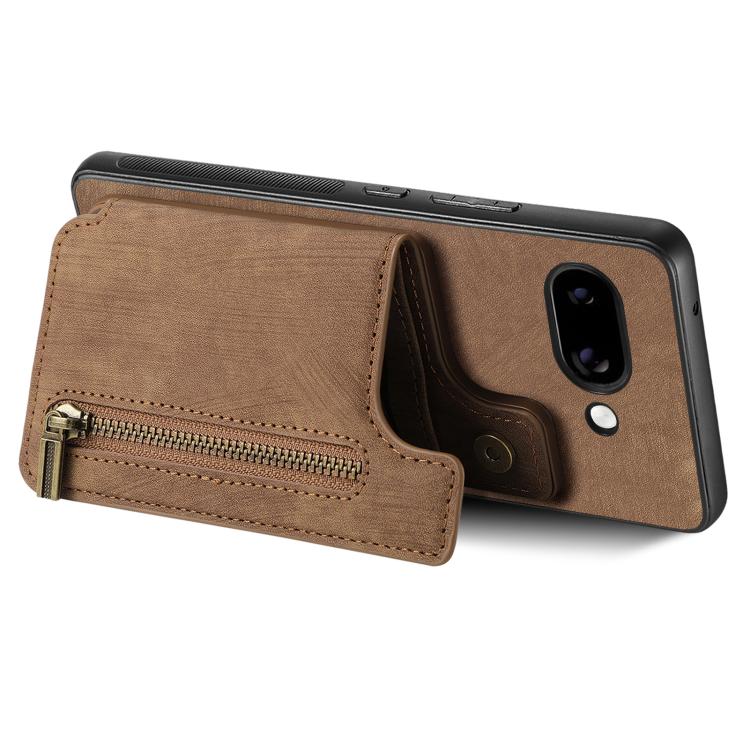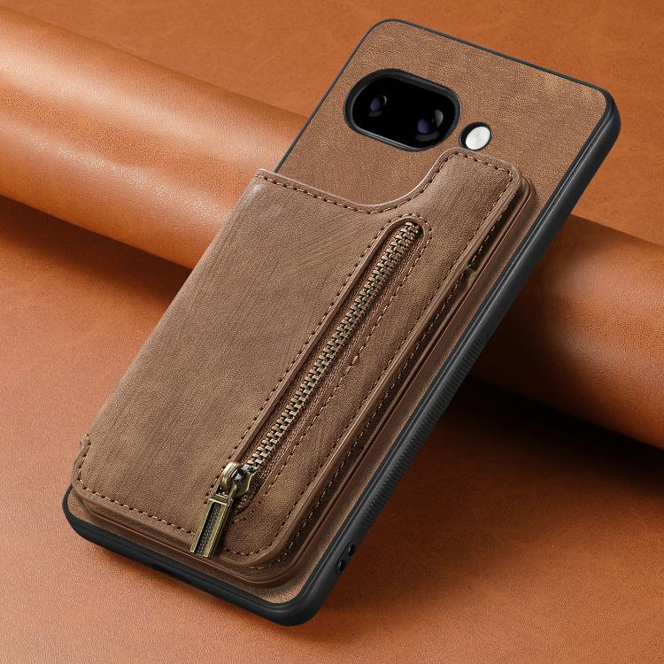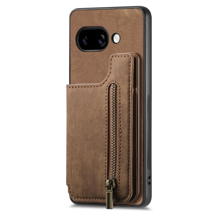 Funda de Cuero Retro con Cremallera y Billetera para Google Pixel 9A (Marrón)