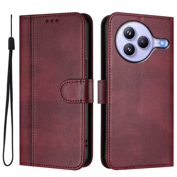 Funda de cuero retro con hebilla y empalme de línea para Xiaomi Civi 5 Pro 5G (rojo vino)