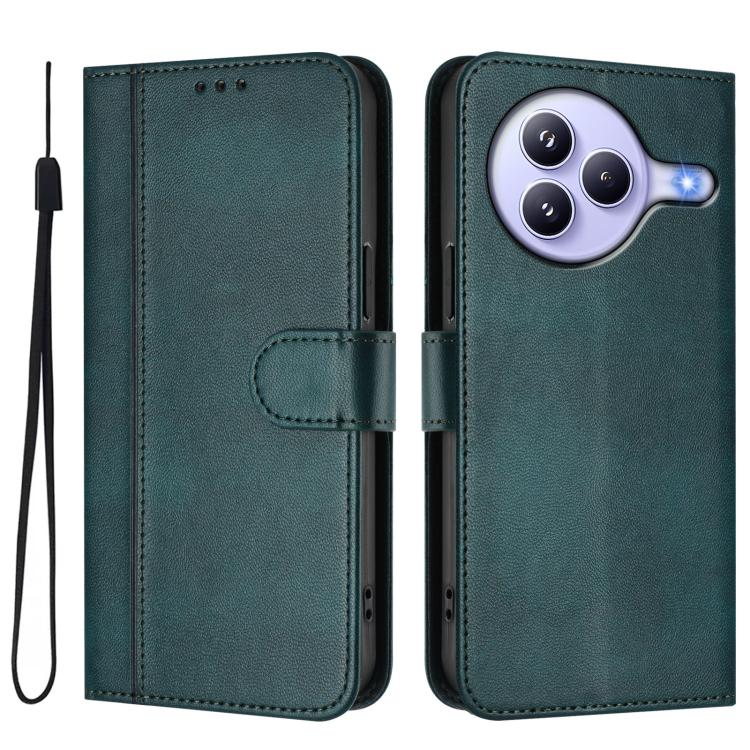 Funda de cuero retro con hebilla y empalme de línea para Xiaomi Civi 5 Pro 5G (verde oscuro)