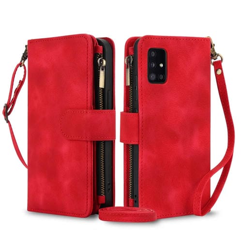Funda Cuero Rfid con Cremallera para Samsung Galaxy S20+ 5G Dream con 9 Tarjetas y Cordón (Rojo)