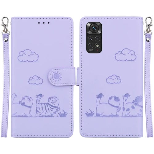 Funda de Cuero Rfid con Diseño de Gatos Lindos para Redmi Note 11 (Morado)