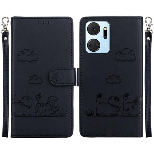 Funda de Cuero Rfid para Honor X7A con Diseño de Gatos (Negra)