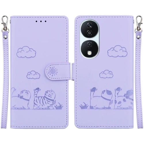 Funda de Cuero Rfid para Honor X7B Play 50 Plus con Diseño de Gatos (Morado)