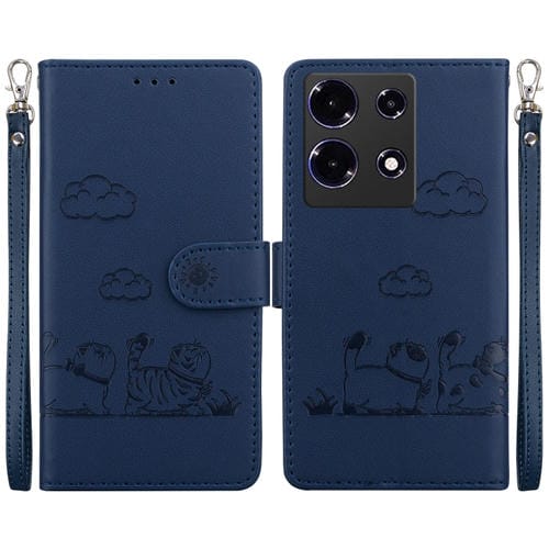 Funda de Cuero Rfid para Infinix Note 30 5G/4G con Diseño de Gatos (Azul)
