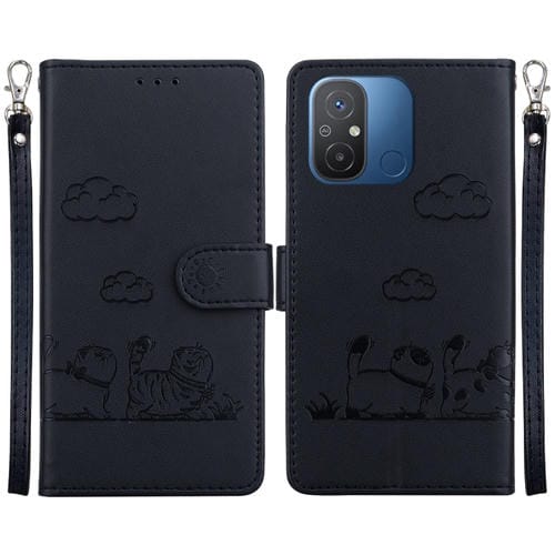 Funda de Cuero Rfid con Diseño de Gatos para Redmi 12C/11A (Negra)