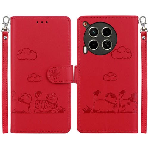 Funda de Cuero Rfid para Tecno Camon 30 5G/4G con Diseño de Gatos (Rojo)