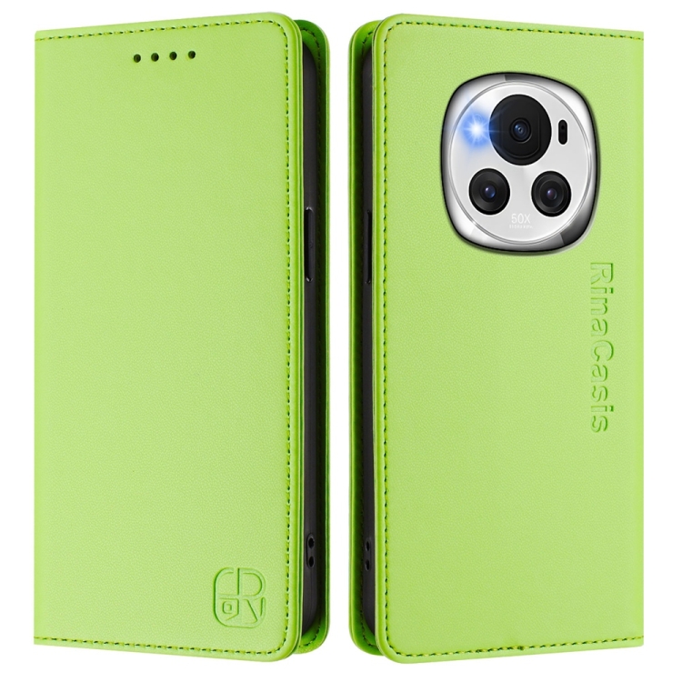 Funda de Cuero Rfid con Doble Pliegue y Succión Magnética para Honor Magic6 Global Rc01 (Verde Hierba)