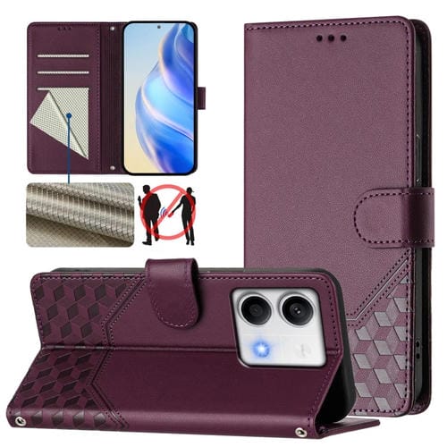 Funda de Cuero Rfid con Relieve de Panal Global para Redmi Note 13 5G (Violeta)