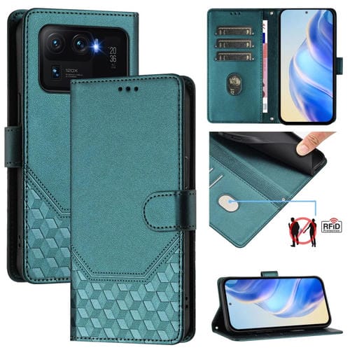Funda de Cuero Rfid con Relieve de Panal para Xiaomi Mi 11 Ultra (Verde Pavo Real)