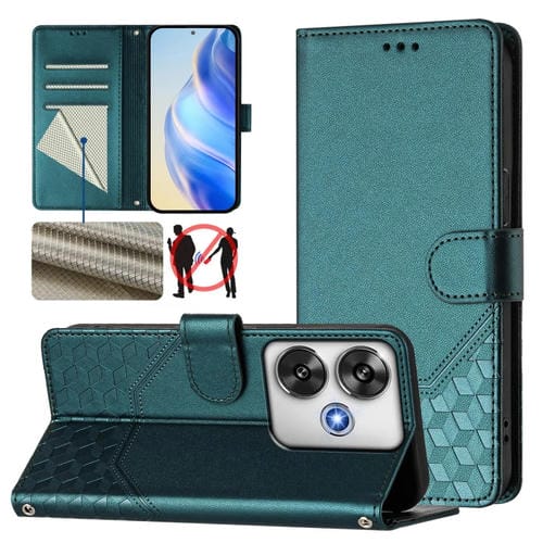 Funda de Cuero Rfid con Relieve de Panal para Xiaomi Poco F6 5G (Verde Pavo Real)