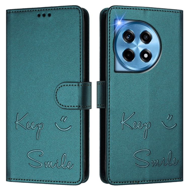 Funda de Cuero RFID con Relieve Sonrisa Global para OnePlus 12R 5G (Verde Pavo Real)